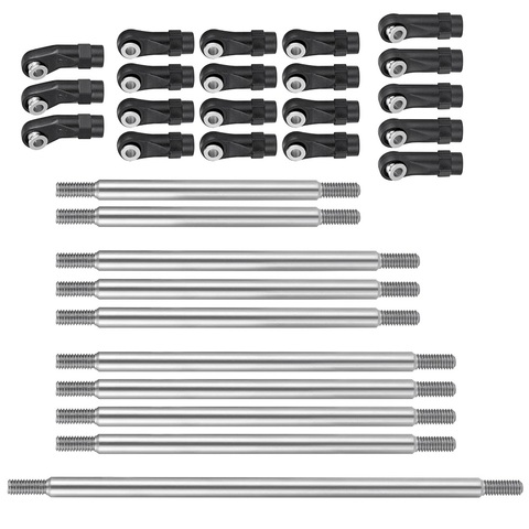 Varilla de enlace de acero inoxidable reforzado y extremos de bola de plástico 10 unids/set para Axial SCX10 II AXI90075 UMG10 1/10 piezas de coche RC